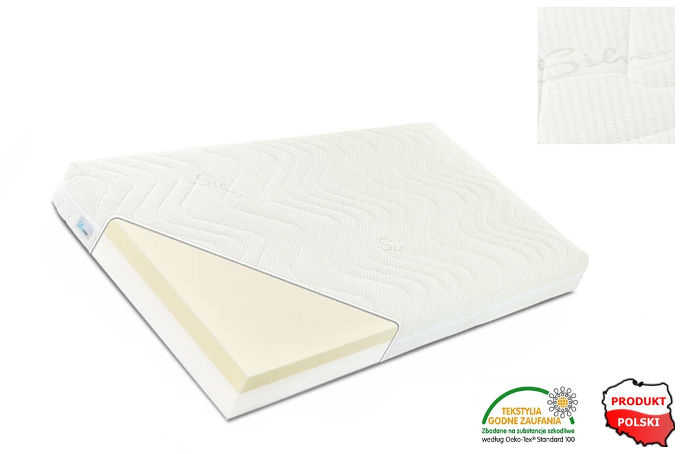 Bazę materaca stanowi wysokiej jakości pianka poliuretanowa. To materiał odporny na odkształcenia i bardzo elastyczny, dzięki czemu stanowi doskonałą podporę dla kręgosłupa.