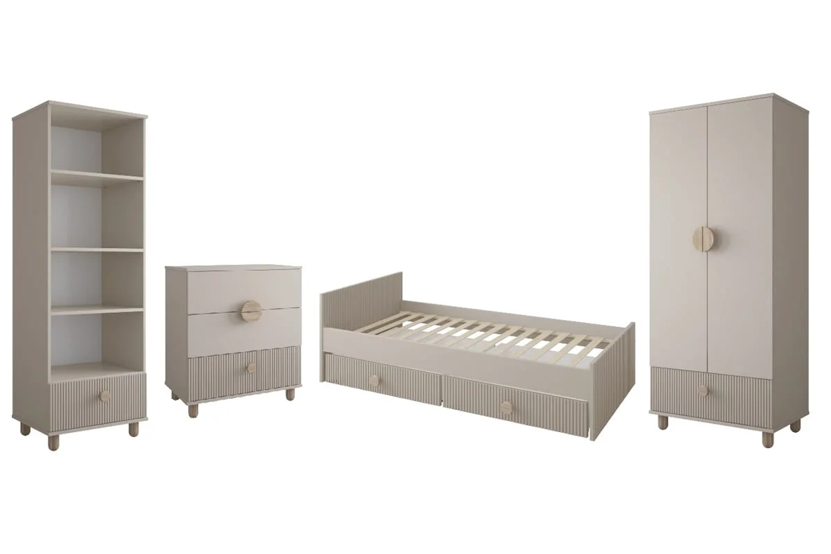 Zestaw mebli dziecięcych LOFT w kolorze kaszmir–buk to harmonia stylu, funkcjonalności i bezpieczeństwa. To kolekcja stworzona z myślą o rodzicach, którzy chcą urządzić pokój dziecka w sposób elegancki, praktyczny i przyjazny. Dzięki subtelnym barwom i naturalnym akcentom wnętrze staje się pełne ciepła i spokoju, tworząc idealne miejsce do zabawy, nauki i odpoczynku.